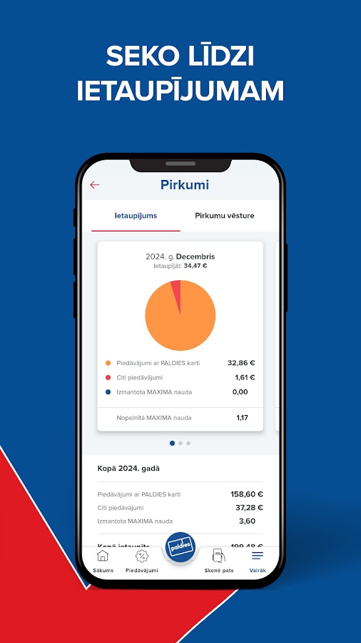 Свяжите приложение со своей картой СПАСИБО или создайте новую виртуальную карту СПАСИБО, и в следующий раз, когда вы будете платить за покупку, отсканируйте QR-код, отображаемый на экране оформления заказа, чтобы зарегистрировать карту СПАСИБО, а пластиковую карту СПАСИБО больше не следует использовать! Приложив к приложению банковскую платежную карту, вы также сможете оплачивать покупки в магазинах MAXIMA в своем новом приложении! Просто и удобно!