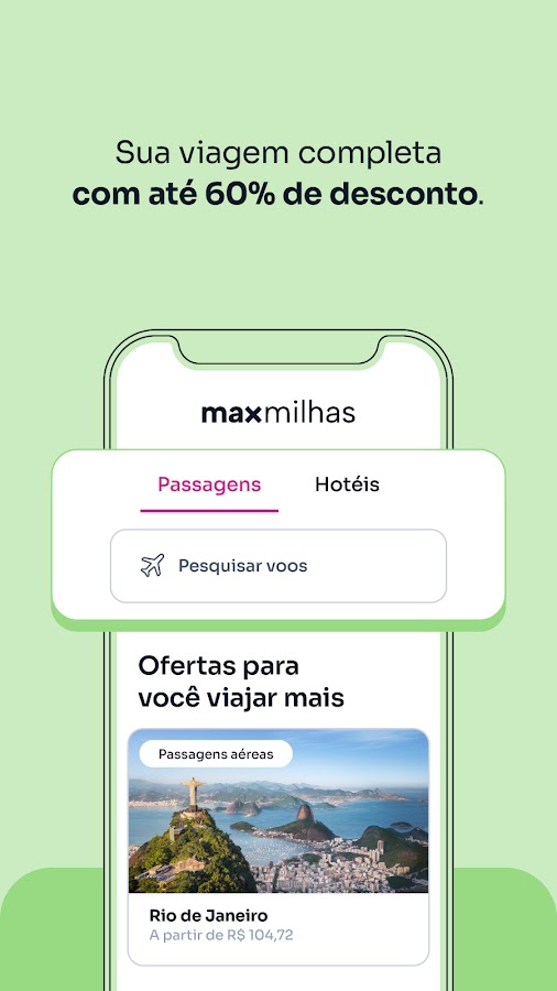 MaxMilhas — это решение, позволяющее вам путешествовать больше и экономить деньги! Наша платформа предлагает интеллектуальные комбинации авиабилетов, что позволяет искать международные и внутренние рейсы и покупать их по лучшим ценам.