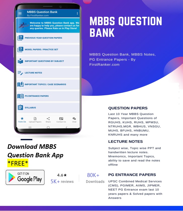 Приложение «Банк вопросов MBBS» от FirstRanker.com предлагает прошлые экзаменационные работы, решенные решения, учебные заметки, важные вопросы, подготовку к поступлению на PG, неограниченное количество тестов MCQ и ресурсы для ведущих медицинских университетов, охватывающие все предметы MBBS — совершенно бесплатно, без рекламы и доступно в автономном режиме.