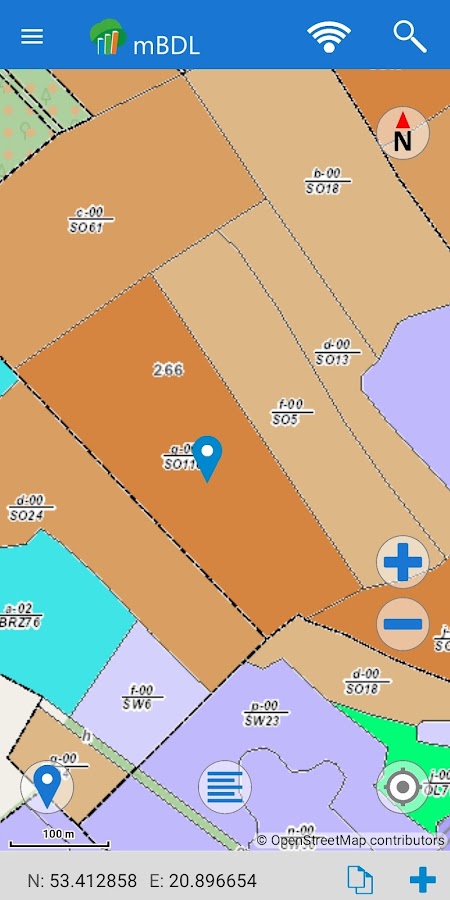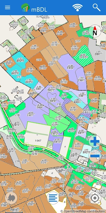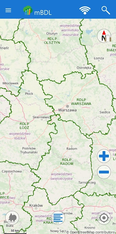 Приложение mBDL (Mobile Forest Data Bank) обеспечивает прямой доступ к картам леса на телефонах и планшетах. Основным содержанием приложения являются лесные тематические карты БДЛ, такие как: базовая карта, древостой, формы собственности, лесные местообитания, растительные сообщества, карта охоты, карта развития туризма и карта пожарной опасности и временные запреты на вход в леса. В дополнение к отраслевым картам пользователь имеет возможность отображать предустановленные растровые фоны, например, топографическую карту или аэрофото/спутниковый ортофотоплан, а также карты из внешних сервисов WMS. Адреса самых популярных сервисов, например, кадастровые данные, ортофотоплан или сервис ГДОС, сохраняются в приложении постоянно, что упрощает их использование. Другие, любые WMS-сервисы можно подключить, введя определенный URL-адрес, который затем запоминается в приложении.