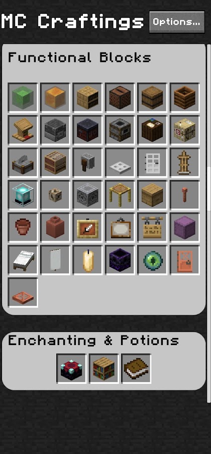 MC Craftings — идеальное приложение для поклонников Minecraft, созданное для обеспечения легкого доступа ко всем рецептам, которые можно создать в игре. С обширной библиотекой рецептов, доступной в автономном режиме. MC Craftings — ваш помощник в крафте, благодаря которому собирать ресурсы, создавать предметы и улучшать игровой процесс стало проще, чем когда-либо.
