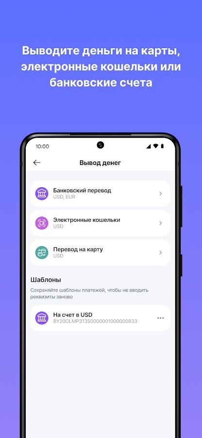 Bank Transfer, E-wallet, Transfer to a plastic card — выбирай способ и валюту, которые тебе удобны.