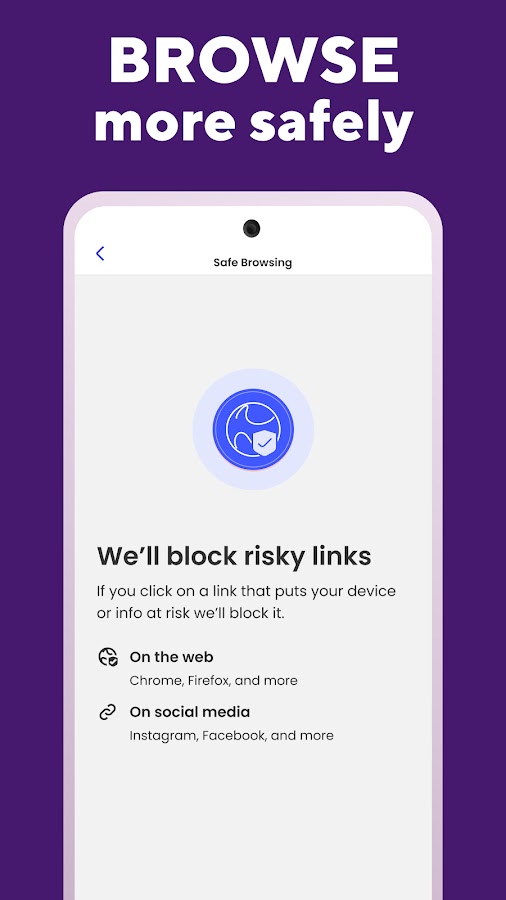 • Автоматически блокируйте вредоносные веб-сайты, чтобы вы могли безопасно просматривать их.