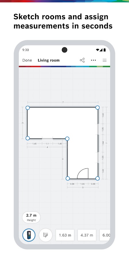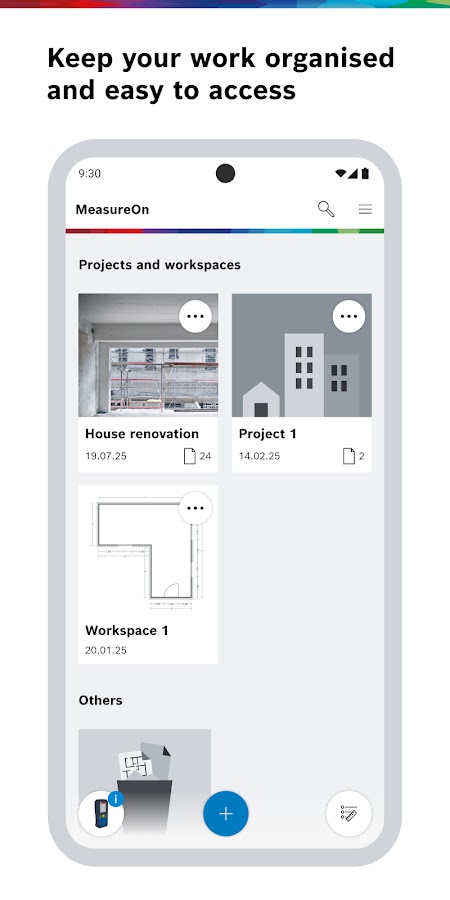 Сохрани все данные в одном месте: MeasureOn от Bosch Measuring Tools – приложение для простого документирования планов здания, результатов измерений, фотографий и заметок прямо на месте.