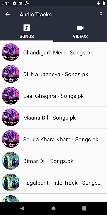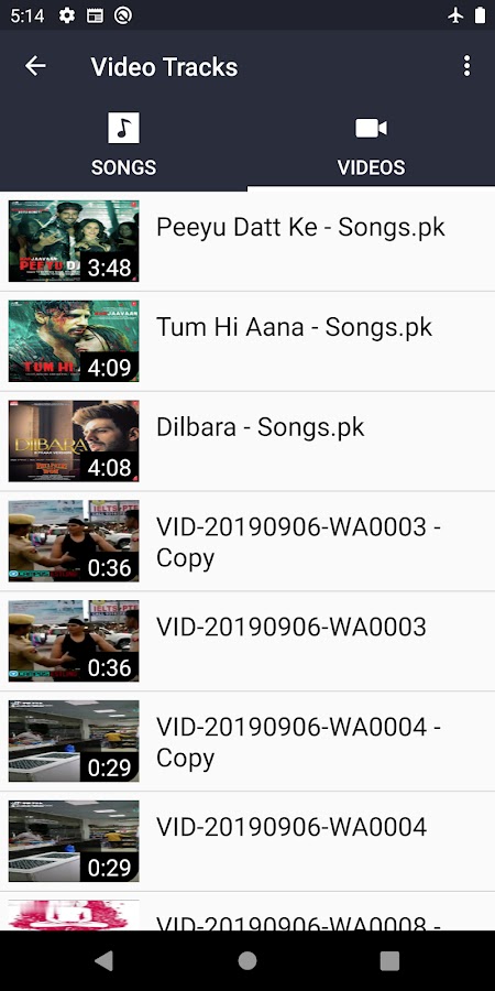 Игрок показывает список всех медиа-файлов i.e аудио и видео файлов в приложении. Пользователь может выбирать и воспроизводить эти файлы.