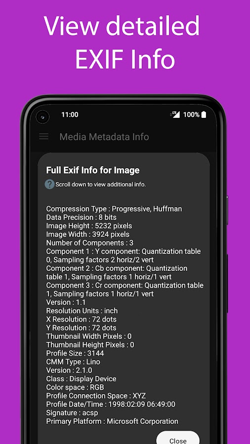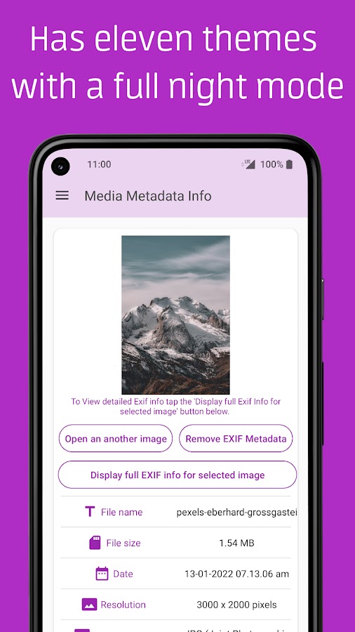 С помощью Media Metadata Info вы можете защитить свою конфиденциальность, удалив любые EXIF-метаданные из ваших фотографий перед их публикацией/загрузкой. Приложение разработано для мобильных устройств Android и имеет дополнительную покупку внутри приложения.