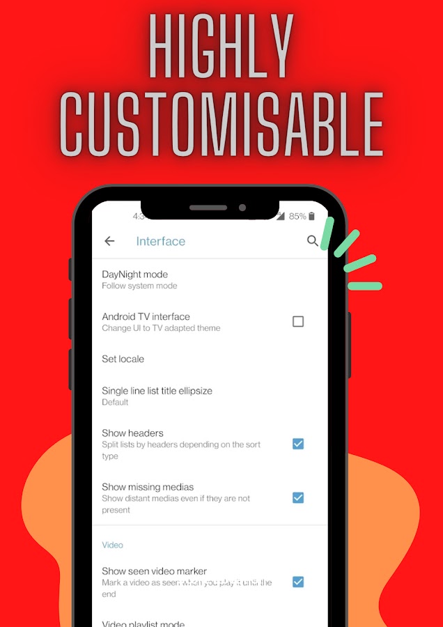* Поддерживает автоматический поворот, настройку соотношения сторон и жесты для управления громкостью, яркостью и поиском.
