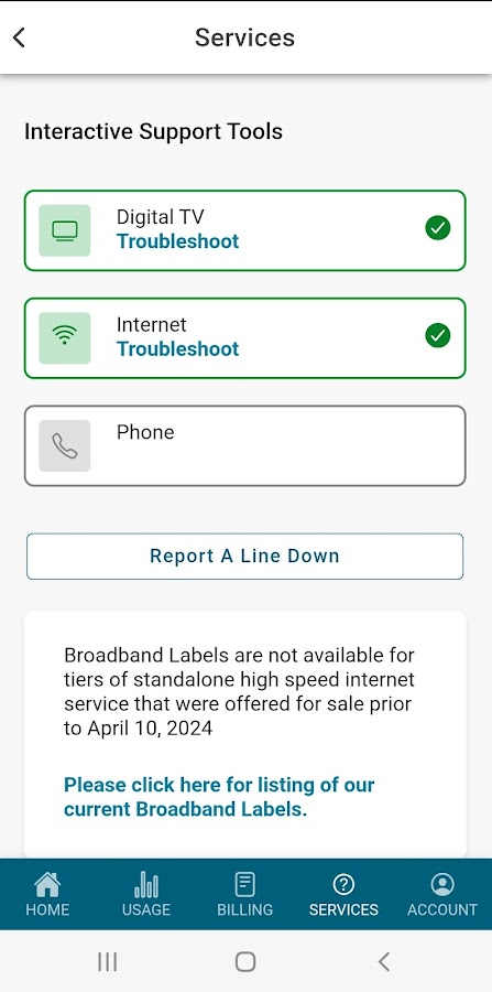 • Проверка наличия перебоев в обслуживании телевидения, интернета и телефона в вашем районе