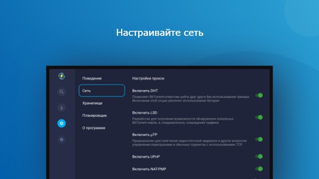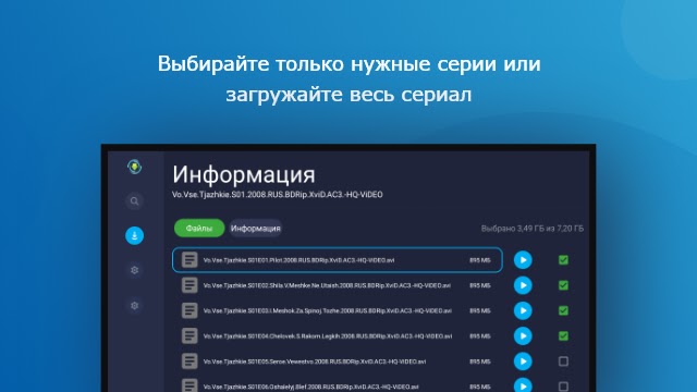 Качайте бесплатные фильмы и сериалы на высокой скорости, которую обеспечивает протокол гиперраздачи BitTorrent. Используйте скоростное соединение (Wi-Fi или 4G) и загружайте файлы без ограничений.