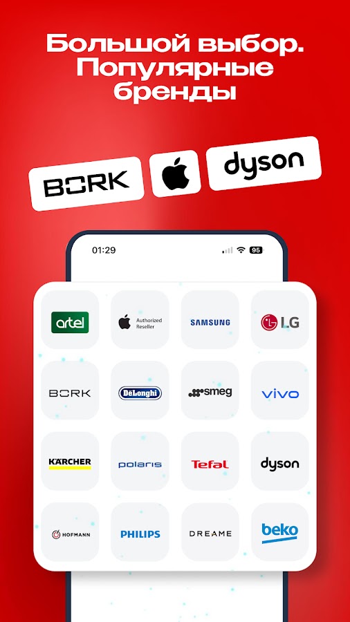 ✅ Огромный выбор: У нас вы найдете широкий ассортимент товаров от ведущих мировых и отечественных брендов, таких как Lg, Samsung, Apple, Bosch, Braun, Philips, Tefal, Artel по доступным ценам с гарантийными документами.