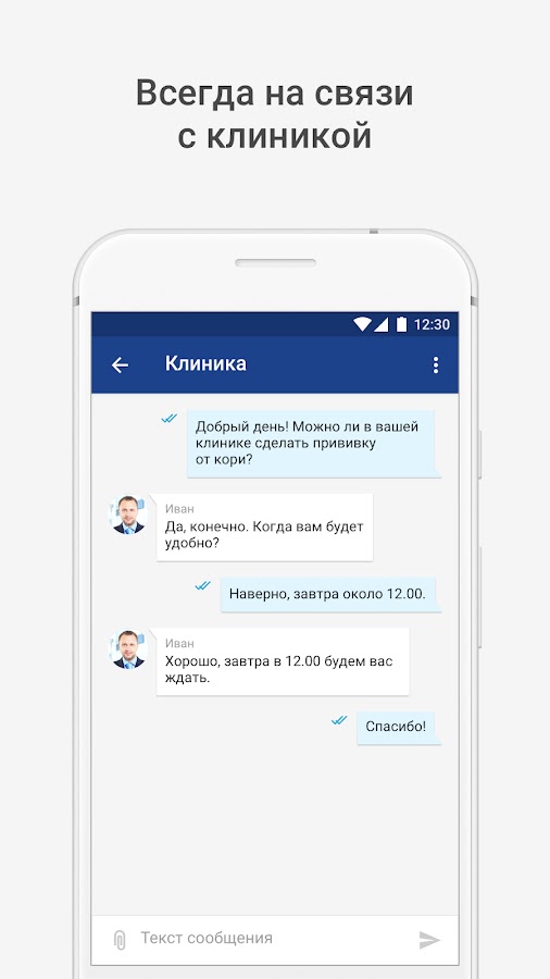 — Общайтесь с клиникой и врачом в чате. Записывайтесь на прием, уточняйте у врача детали уже назначенного лечения или расскажите о новых симптомах.