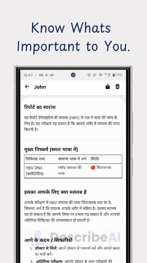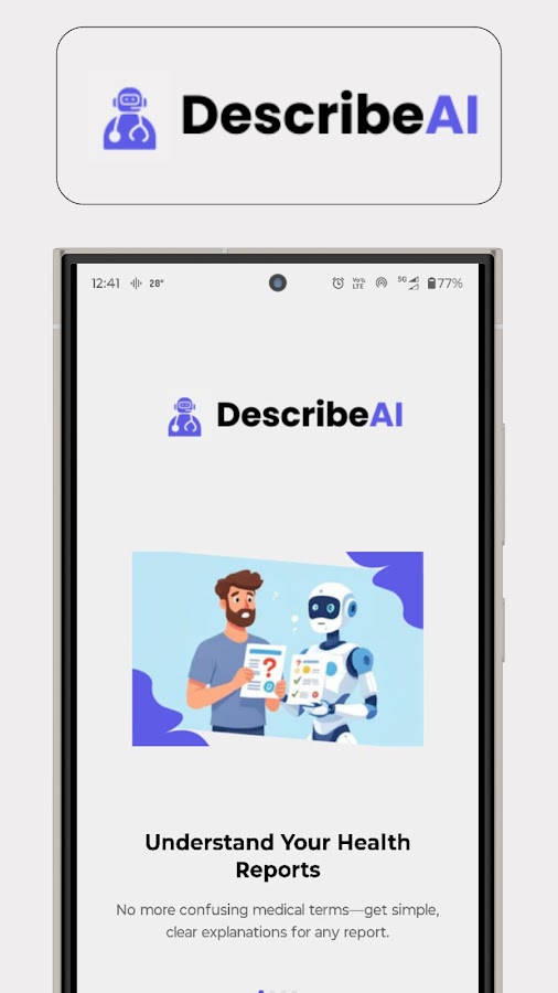 Удобный интерфейс: Мы понимаем важность простоты и удобства использования. Интуитивно понятный интерфейс DescribeAI обеспечивает легкую навигацию в приложении, предоставляя доступ к важной медицинской информации в любое время.