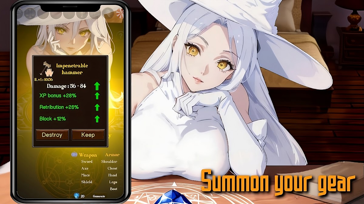 Призывайте снаряжение: оружие и доспехи в стиле гача для улучшения своих героев.