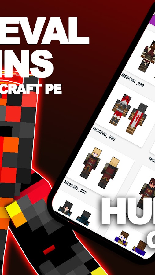 Medieval Skins For MCPE — это приложение-каталог скинов для вашего MCPE. Доступны сотни скинов пиратов, эльфов, лучников, викингов и героев, и, конечно же, это приложение предоставляет скины бесплатно и постоянно обновляется.