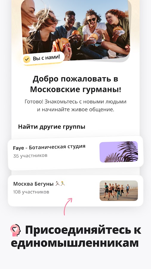 — Мы будем рекомендовать вашу группу всем, кто живет рядом с вами, чтобы вы могли найти как можно больше участников.