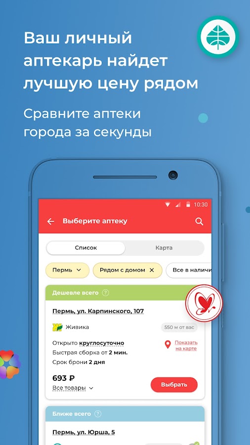 Поиск лекарств в аптеках в одном приложении, проверка наличия, заказ и самовывоз. Мегаптека – это доступ во все аптеки, удобный поиск и быстрое бронирование любого лекарства. Закажите нужные препараты онлайн, и через 30 минут сможете забрать заказанные таблетки из ближайшей аптеки плюс останется время на важные дела.
