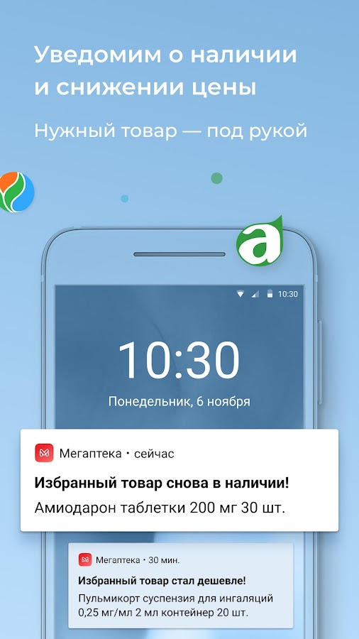 • Уведомление о поступлении лекарства — получите сообщение, как только нужное лекарство появится в продаже.