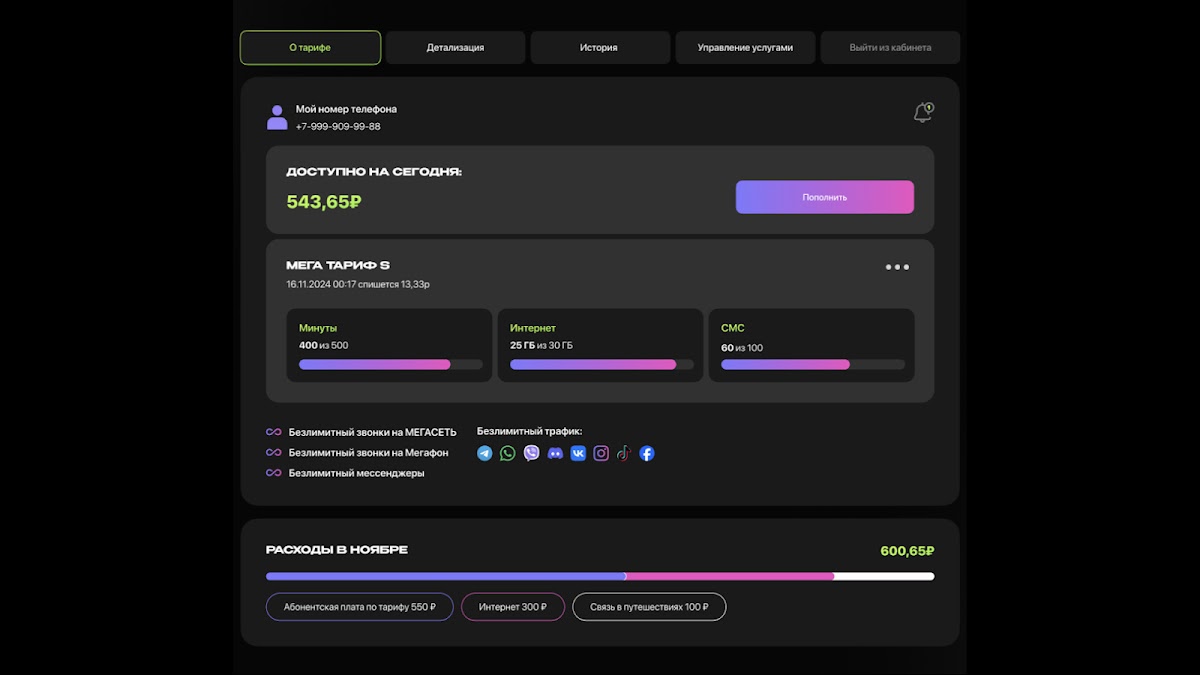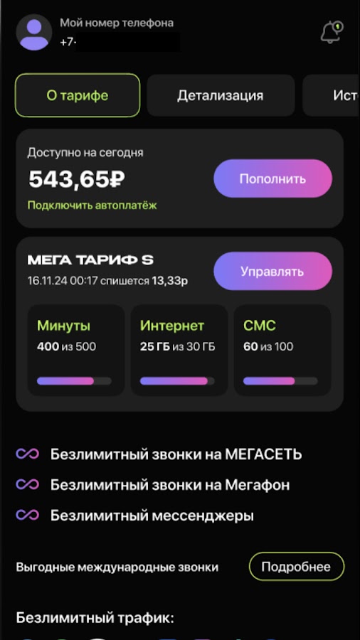 — Контроль баланса и трафика – Проверяйте остаток средств, минут и интернета в реальном времени.