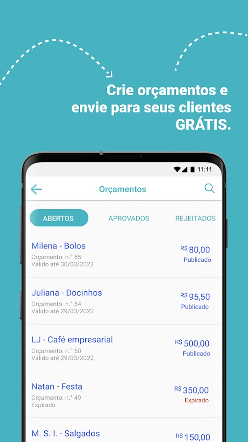 Отправляйте расценки и квитанции в формате PDF или в веб-формате своим клиентам всего за несколько кликов. Больше бюджетов = больше продаж. С помощью MEI Grátis вы также можете импортировать контакты со своего мобильного телефона.