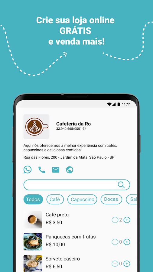 Теперь MEI GRÁTIS позволяет вам создать собственный интернет-магазин, регистрировать товары, контролировать запасы, получать заказы в приложении и контролировать продажи. Отправляйте свой электронный каталог своим клиентам, продвигайте свои товары и услуги и получайте заказы прямо в приложении. Переговоры можно вести прямо в WhatsApp. Продавать и получать платежи еще никогда не было так просто.