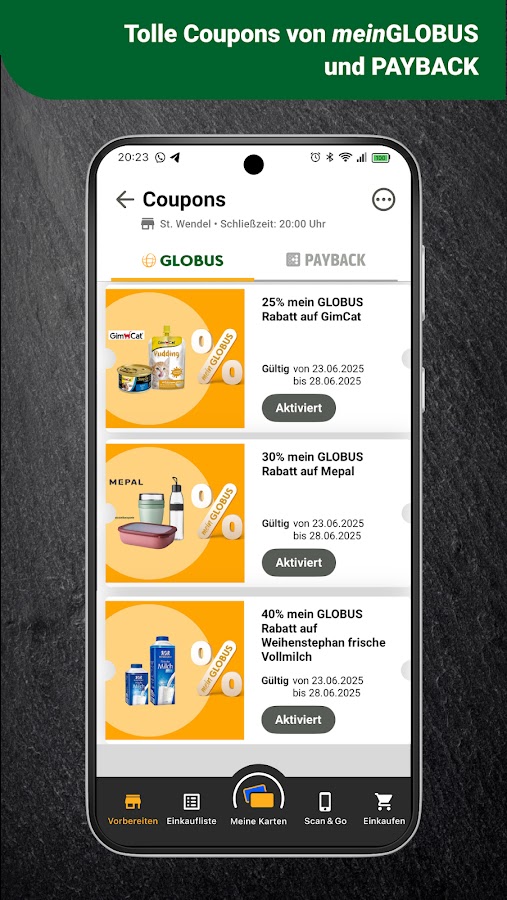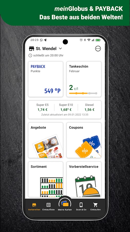 Используйте приложение Mein Globus, чтобы планировать свои покупки, не выходя из дома, узнавать текущие предложения и всегда отслеживать накопленные вами баллы PAYBACK и скидку на топливо Mein Globus. Совершая покупки с помощью Scan&Go, следите за всеми ценами и платите без длинных очередей.