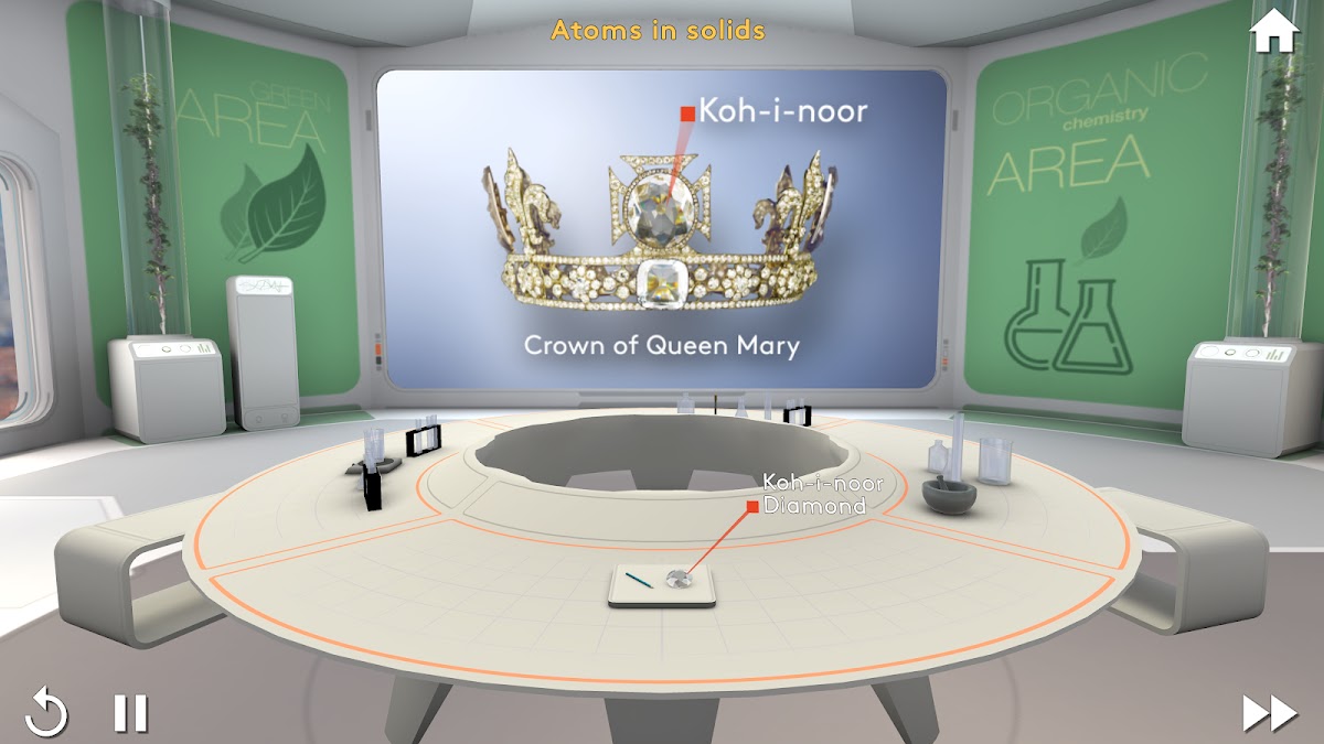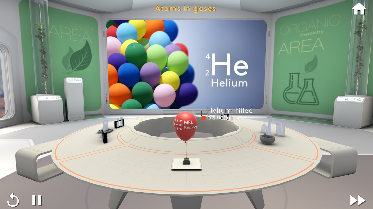 Приложение MEL VR Виртуальные уроки также предлагает уроки, лабораторные и виртуальные модели по таким темам, как изотопы, электроны, ионы, периодическая таблица, молекулярные формулы, изомеры, электростатика и многое другое.