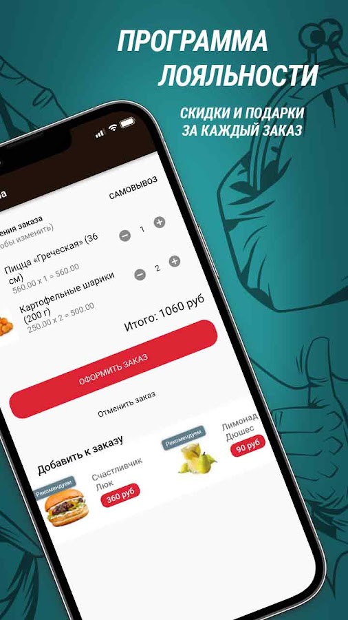 Заказать готовые блюда на доставку или самовывоз легко в нашем мобильном приложении!