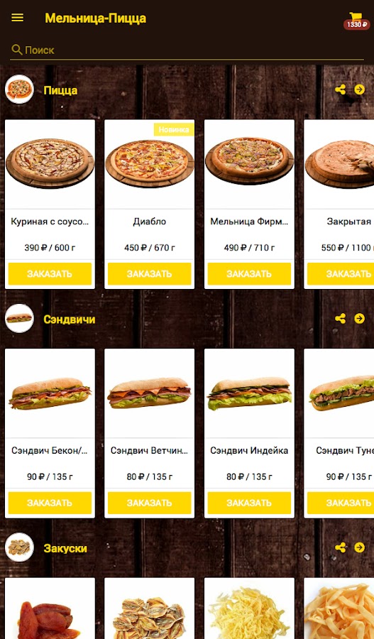 Сеть магазинов «Мельница» это: свежая выпечка, вкусная пицца, свежие разливные напитки и разнообразная закуска.