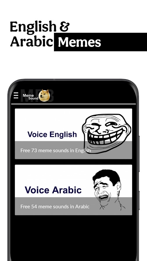 Представляем универсальное MP3-приложение Meme Sound — место, где можно найти аудиоклипы, достойные мемов! Это многофункциональное приложение может похвастаться не одним, а двумя выделенными разделами, которые подходят как для арабских, так и для английских категорий звуков мемов. Погрузитесь в раздел звука арабских мемов, чтобы открыть для себя сокровищницу веселых и культурно значимых аудиофрагментов, идеально подходящих для вашей региональной аудитории.