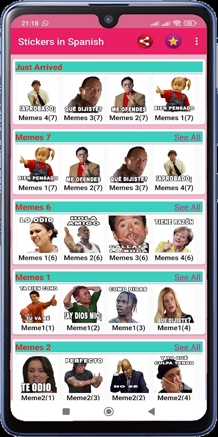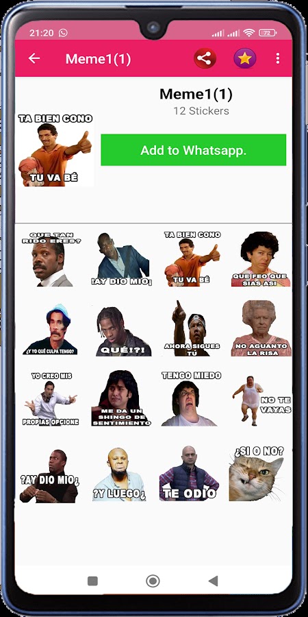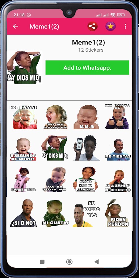 Если вам нравится новое приложение мемы с наклейками фраз на испанском языке для Whats, поделитесь им! с друзьями, семьей.