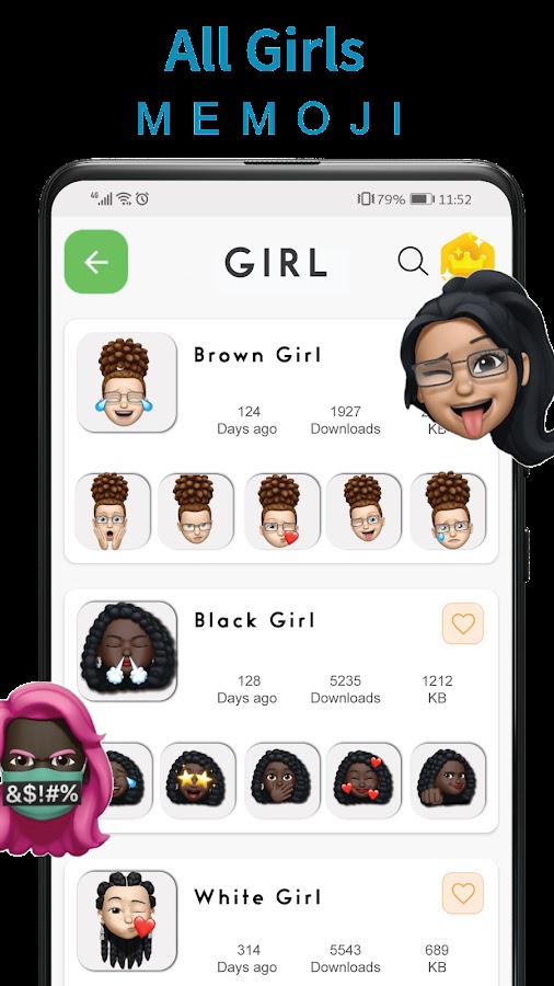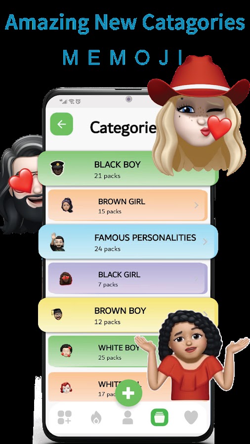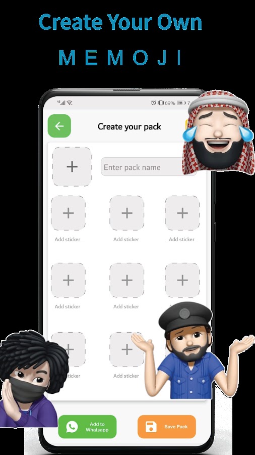 Мы предлагаем вам самые большие стикеры Memoji для iPhone и Genmoji для Android с соответствующими категориями. Теперь вы можете создавать свои собственные стикеры с помощью нашего конструктора стикеров для WhatsApp. Это приложение для создания стикеров Memoji WhatsApp для Android охватывает все цвета кожи и волос, позволяя вам создавать стикеры с изображением себя или своих друзей с еженедельными обновлениями в соответствии с вашими требованиями и тенденциями.