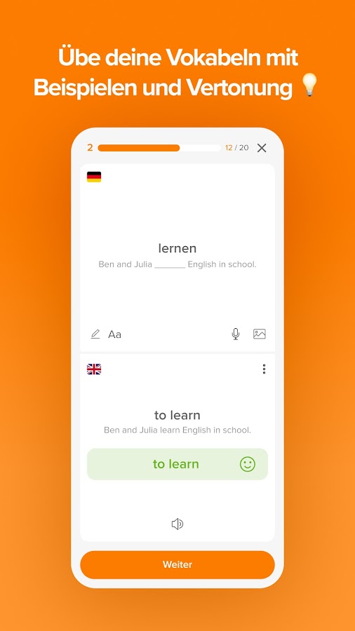 С тренажёром словарного запаса Phase6 вы будете оптимально подготовлены к следующему тесту на словарный запас. Более того: вы сохраните полученные знания надолго после теста, потому что наш подход сочетает научные методы с увлекательным обучением. Именно так Phase6 помогает вам учить слова быстрее и эффективнее. Мы занимаемся этим уже 20 лет 🎉.