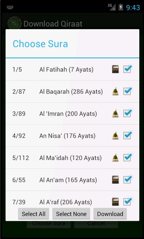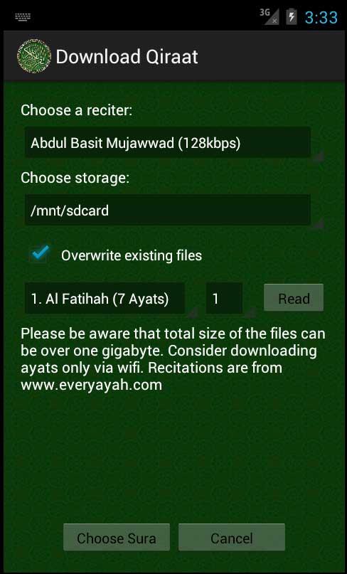 Это приложение изпользует mp3 файлы из www.everyayah.com. После установки приложения, вам так же нужно будет скачать декламации из “Скачать Кираат“ меню.