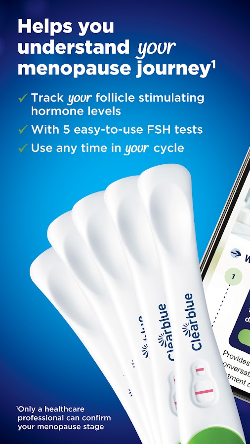 Стадия менопаузы — приложение Clearblue® me предназначено для использования с тестами индикатора стадии менопаузы Clearblue®, которые помогут вам узнать больше о своем пути к менопаузе[1]. Вместе с простыми в использовании тестами на фолликулостимулирующий гормон (ФСГ) в течение нескольких дней приложение укажет вероятную стадию менопаузы: пременопаузу, раннюю перименопаузу, позднюю перименопаузу или постменопаузу. Чем больше вы узнаете о своей сцене, тем лучше вы сможете подготовиться.