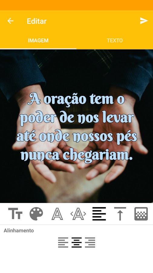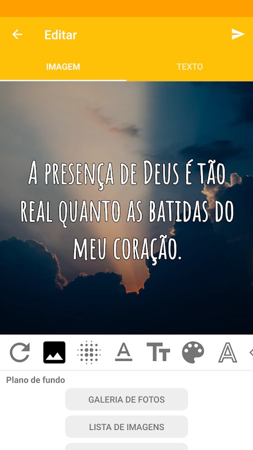 При отправке сообщения вы можете выбрать красивые изображения, присутствующие в приложении, или, если хотите, вы можете выбрать свои собственные фотографии из галереи и использовать их в качестве фона. Ваши евангельские послания будут прекрасны!