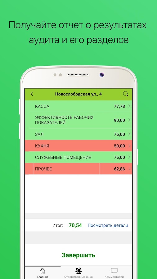 Календарь проверок (аудитов), заполнение чек-листов с оценкой, фото, аудио, комментариями в мобильном приложении.