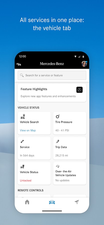 Благодаря приложению Mercedes-Benz на вашем устройстве вы всегда имеете прямой доступ к своему автомобилю. Просматривайте такие данные, как пробег, уровень топлива и т. д., находите местоположение вашего автомобиля или действуйте с помощью таких удобных функций, как дистанционный запуск двигателя и дистанционная блокировка/разблокировка.
