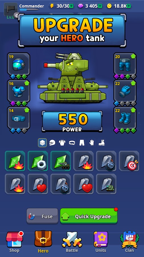 Соедини два одинаковых танка, чтобы разблокировать более сильную и разрушительную боевую машину. Прокачай свою армию от базовых машин до эпических мега-танков, таких как легендарный КВ-44 или Левиафан! Чем выше уровень слияния, тем больше огневая мощь.
