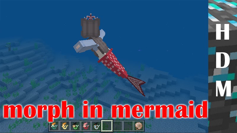 Океан в майнкрафте очень интересен, хочется исследовать его. И теперь у вас появится чудесная возможность проводить много времени в прекрасном подводном мире. Вы сможете плавать невероятно быстро и грациозно, как русалочка Ариель! Чтобы превратиться в русалку, нужно одеть головной убор «корона русалки», находясь на суше, а затем смело ныряйте в океан. Превращение в русалку с шикарным хвостом произойдет под водой. Теперь вы можете дышать под водой, видеть в темноте, и самое главное – быстро плавать. Незабываемое ощущение! Попробуйте поплавать наперегонки с дельфинами, вам понравится!