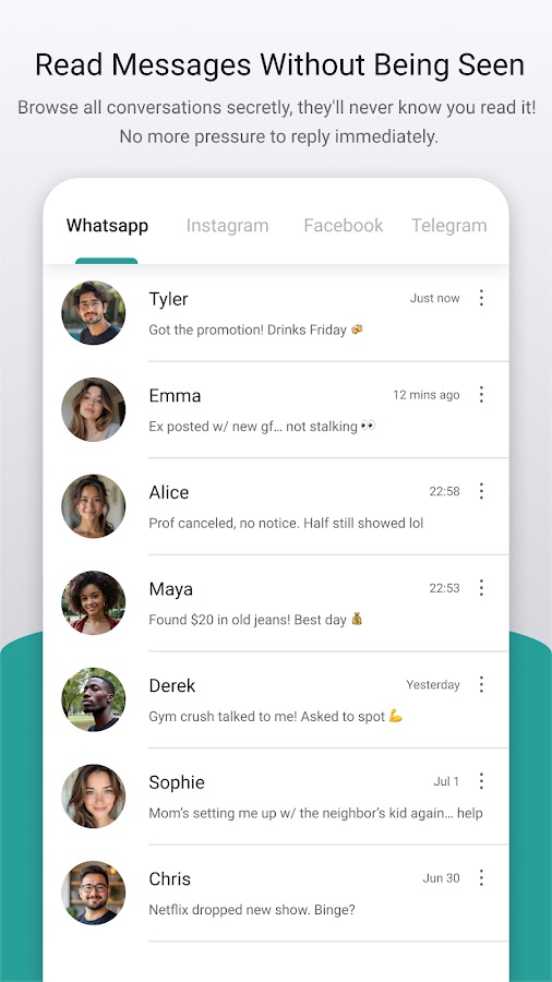 Ваша палочка-выручалочка в общении! С Message Peeping Tom вы можете просматривать сообщения, не открывая уведомления о прочтении.