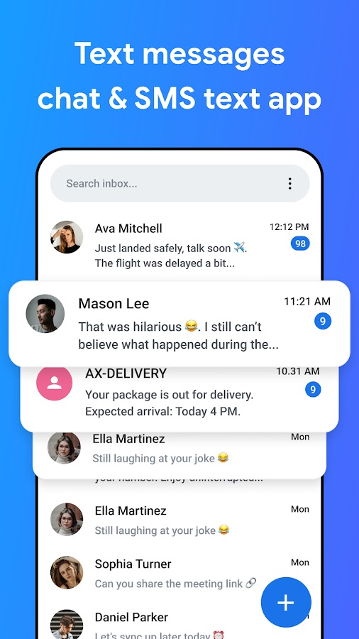 Скачайте «Сообщения» — приложение для обмена SMS и текстовыми сообщениями сегодня и сделайте свои разговоры умнее, быстрее и организованнее.