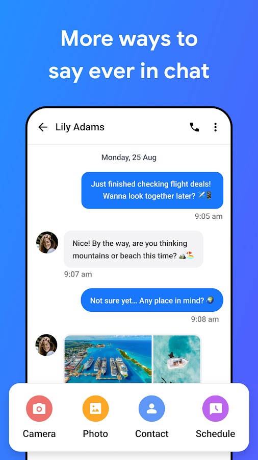 • Прикрепление контактов — делитесь важной контактной информацией прямо из сообщений.