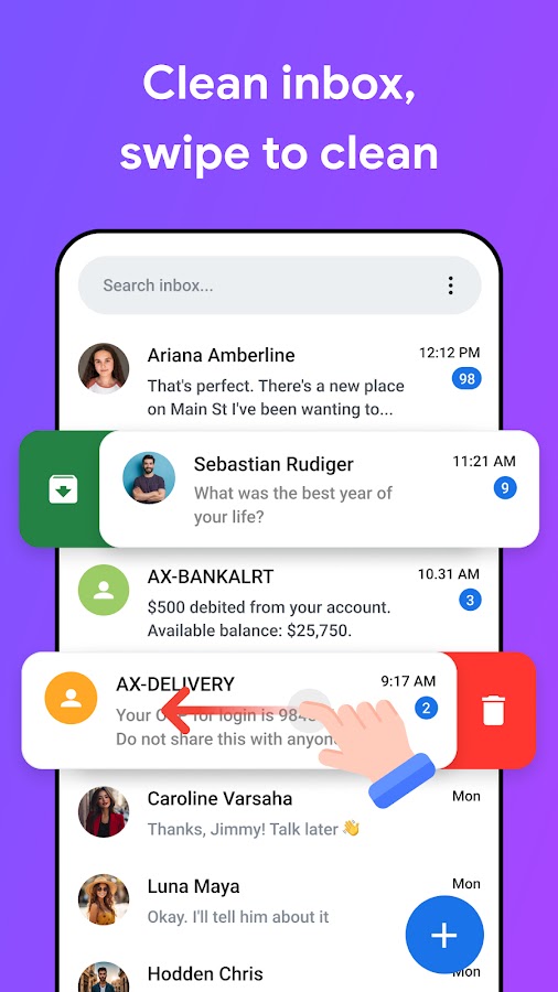 • Настраиваемые действия свайпом — быстро архивируйте, удаляйте или закрепляйте разговоры простыми жестами. • Экран после вызова — мгновенно отправляйте или планируйте сообщения сразу после звонка.