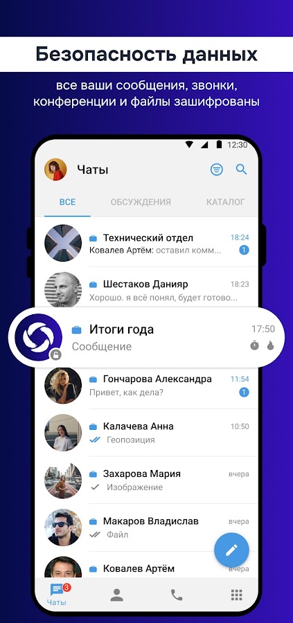 Мессенджер Команда быстрый и надёжный мессенджер для корпоративной коммуникации обеспечивает конфиденциальность внутренних данных.