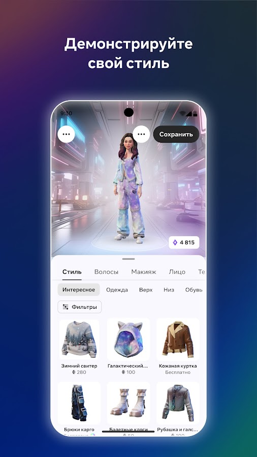 Персонализируйте аватар с помощью новых нарядов, причесок и эмотиконов. Меняйте внешний вид по своему вкусу и выглядите максимально смело или расслабленно.