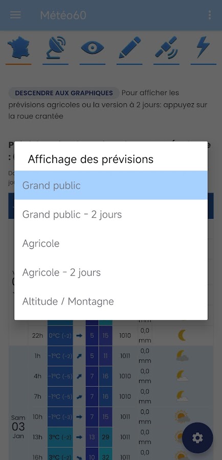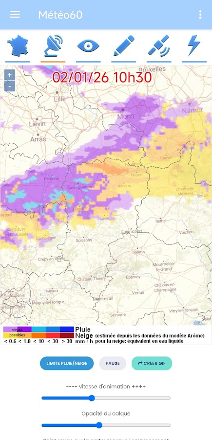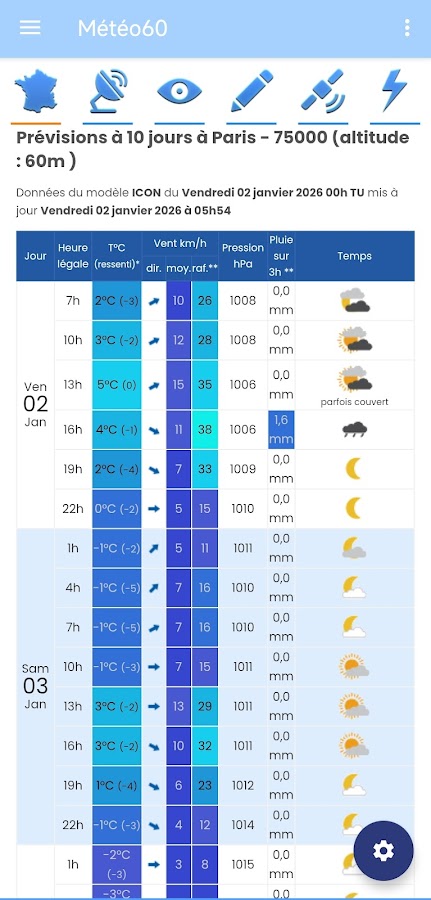 Meteo60 предлагает очень подробные прогнозы, используя немецкую модель ICON и французскую модель AROME.