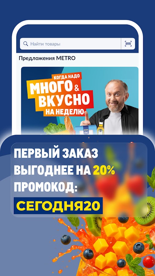 Скачайте приложение METRO: заказ продуктов на дом для Android бесплатно - последняя версия (7.2.0) уже доступна для установки на ваш телефон или планшет.