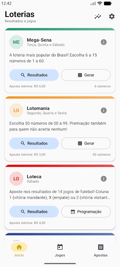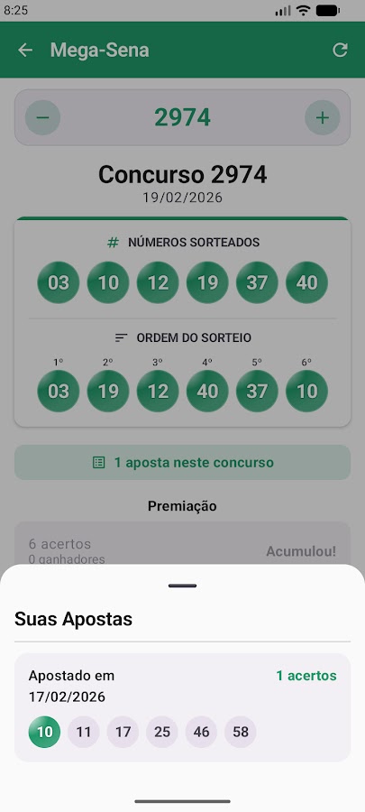 Это приложение не представляет и не аффилировано с каким-либо государственным учреждением. Чтобы посмотреть официальную страницу лотереи, посетите https://loterias.caixa.gov.br/Paginas/default.aspx