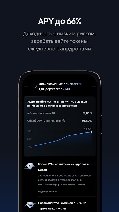 — Заработок c MX: Удерживайте MX и получайте прибыль до 60%.