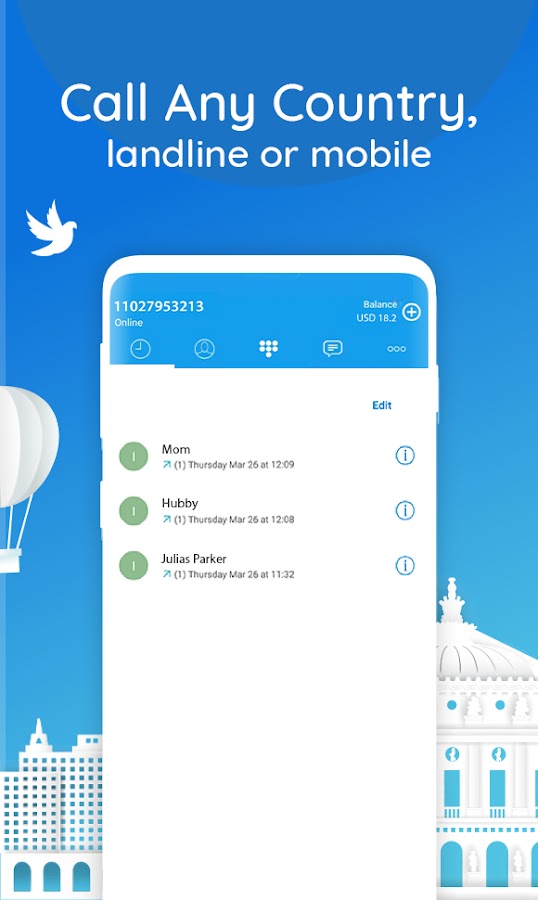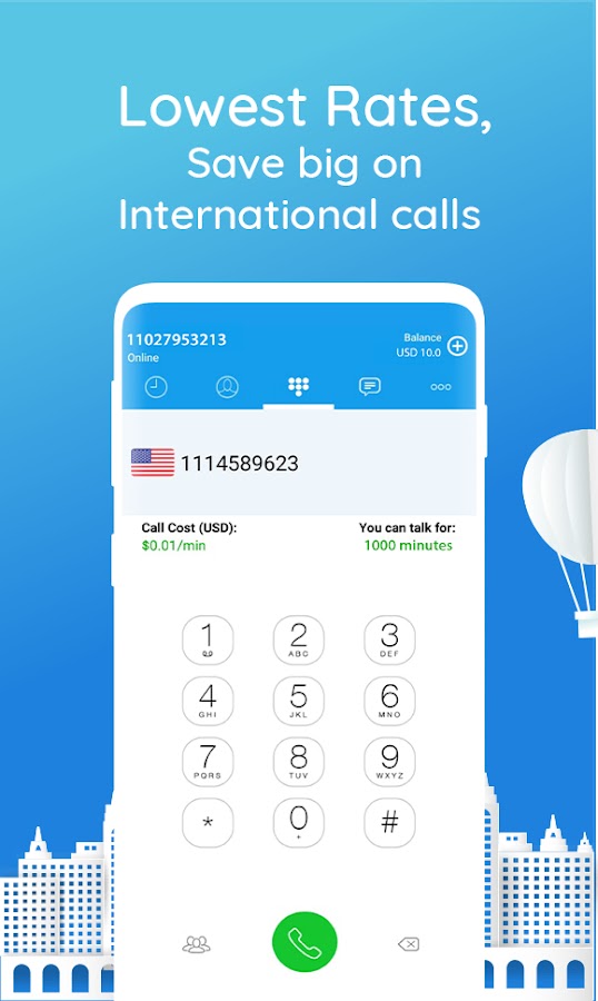 С помощью этого приложения для международных звонков вы можете звонить в любую страну по самым дешевым тарифам, доступным на мобильном телефоне VoIP. Теперь нет границ для вызова любой страны через VoIP. Делая международные звонки через мобильное приложение VoIP никогда не было так дешево и удобно!